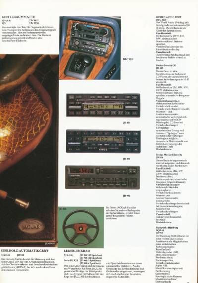 Die Wahl der sichtbaren Hauptkomponenten habe ich auf die damaligen Optionen des Jaguar-Zubehörkatalog beschränkt. Zum Glück hatte ich zufällig das Spitzenmodell im Regal, ein Becker Mexico 2000 Typ 1460 mit CD-Player Becker Silverstone 980, Splitgerät und allen Kabeln im fast neuwertigen Zustand.