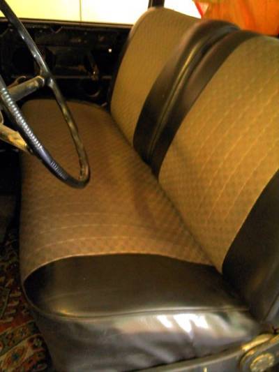 Endlich ist es soweit. Der Innenraum ist fertig zur Anprobe. Heute habe ich die vordere Sitzbank restauriert. Eigentlich war nicht viel zu tun. Hier und da etwas mumifiziertes Fett entfernt und durch Neues ersetzt, Das war es schon. Naja… dann den Bezug abgenommen, alle Federn gerichtet, neues Sisalgewebe gespannt und das Gestell komplett mit roter Rostschutzfarbe angepinselt. Dann die beiden Schemel verkehrt herum am Wagenboden verschraubt, wieder abgenommen und richtig angeschraubt, dann das Gestell installiert, auf die Verstell-Mechanik geachtet und zu guter Letzt die Rückenlehnen verschraubt und den Sitz installiert.