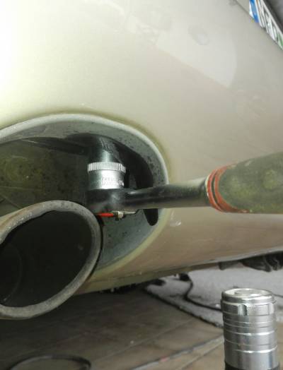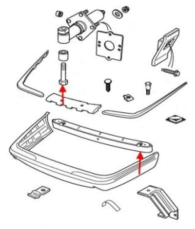 Der hintere Stoßfänger ist auf die gleiche Weise wie vorne montiert. Wir lösen die beiden Schrauben und ziehen den Stoßfänger von den Führungen in den Flügeln nach vorne ab. Achtet auf die Kabel.