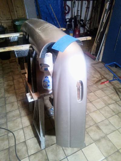 Jetzt kommt das übliche Programm. Reinigen, schleifen, spachteln, wieder schleifen, grundieren, (wieder spachteln, schleifen, grundieren) und zum Schluss lackieren.
